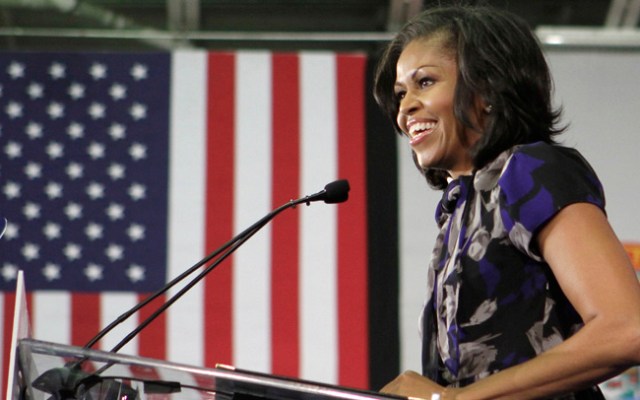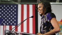 First Lady Michelle Obama hit the campaign trail a day ahead of Hurricane Sandy, which is expected to make landfall on Monday. Photo Credit: AP